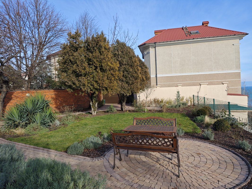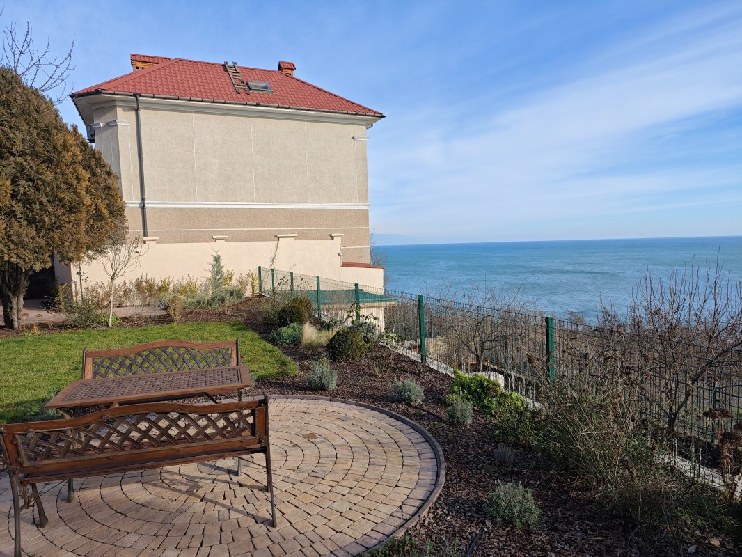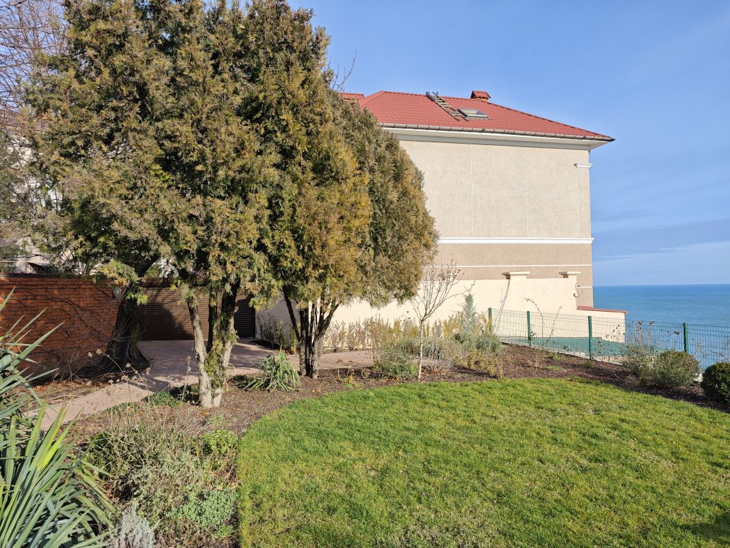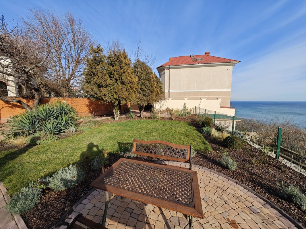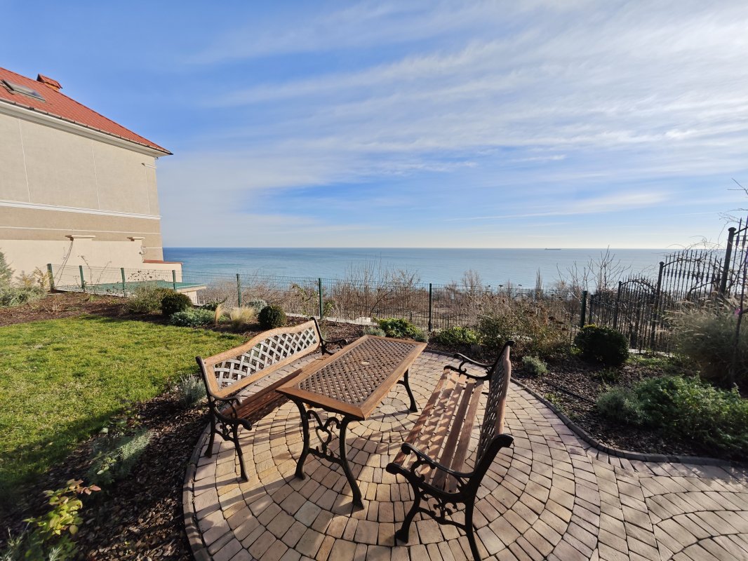 Дом с потрясающим видом на море расположен в закрытом охраняемом кооперативе на 11-й Фонтана. Участок 7 соток, ухоженная территория и панорамные морские виды практически с любой точки.