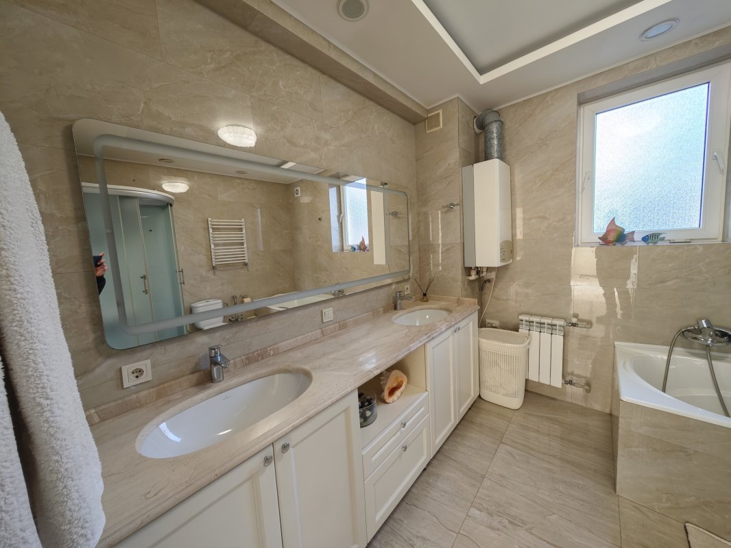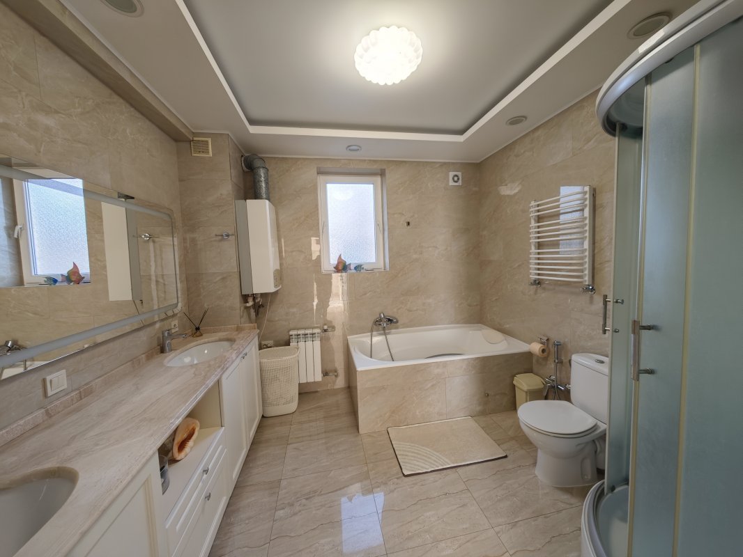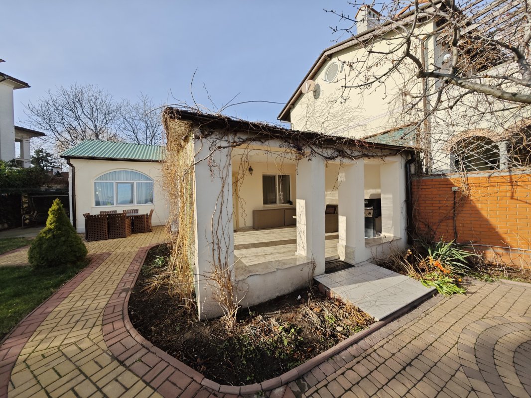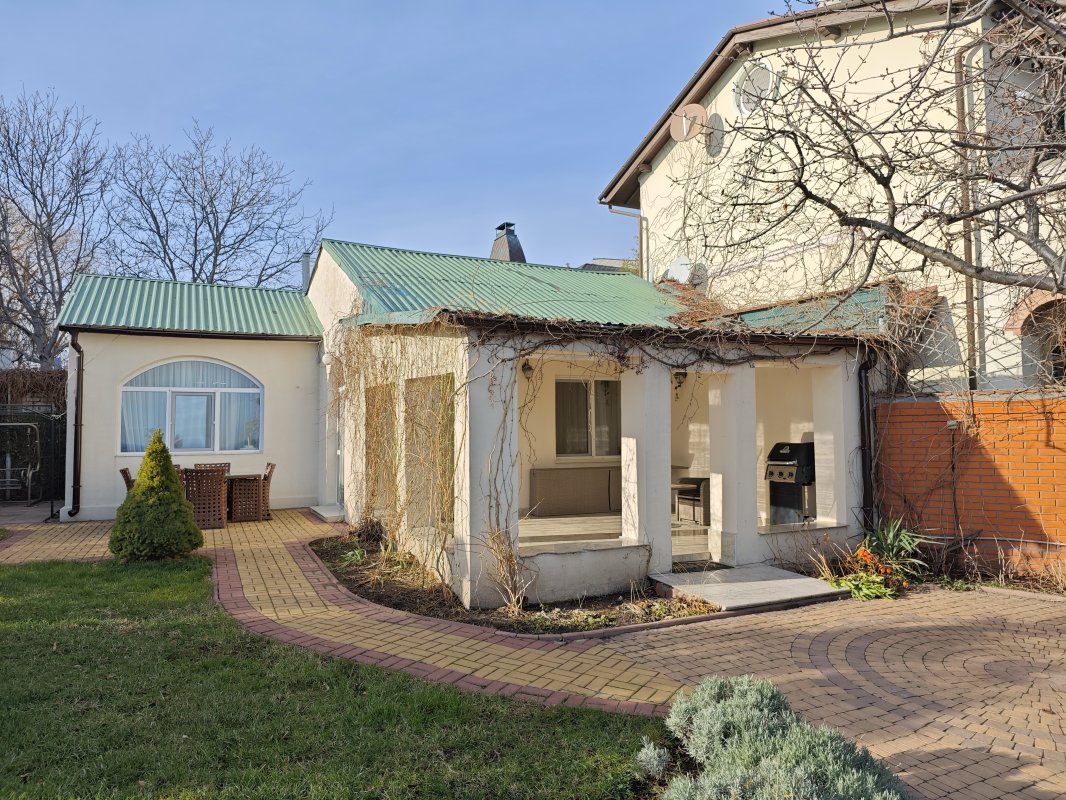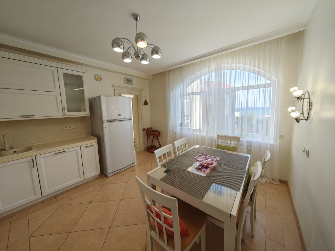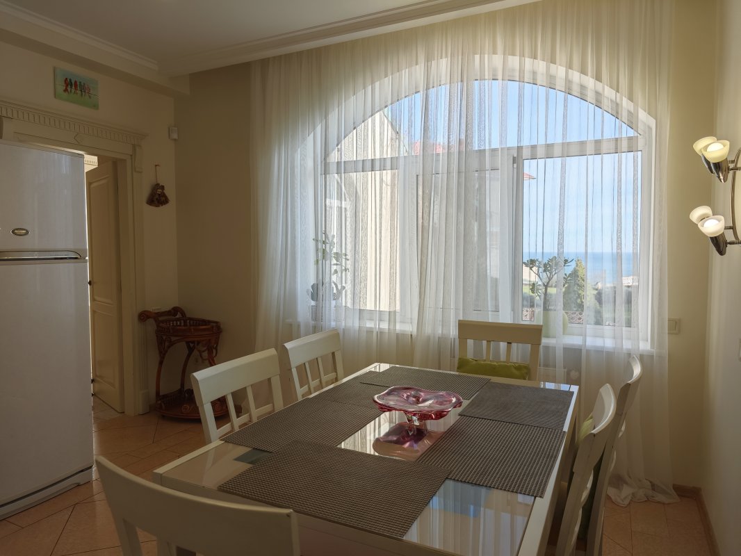 Дом с потрясающим видом на море расположен в закрытом охраняемом кооперативе на 11-й Фонтана. Участок 7 соток, ухоженная территория и панорамные морские виды практически с любой точки.