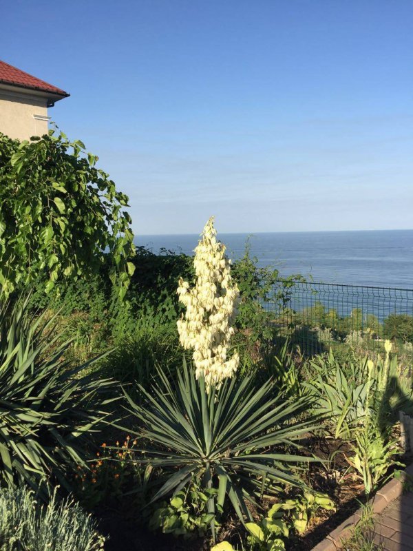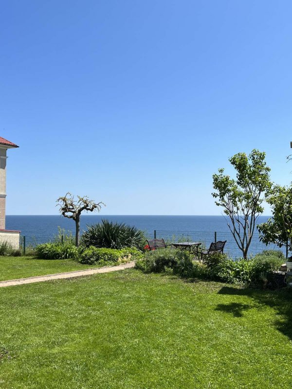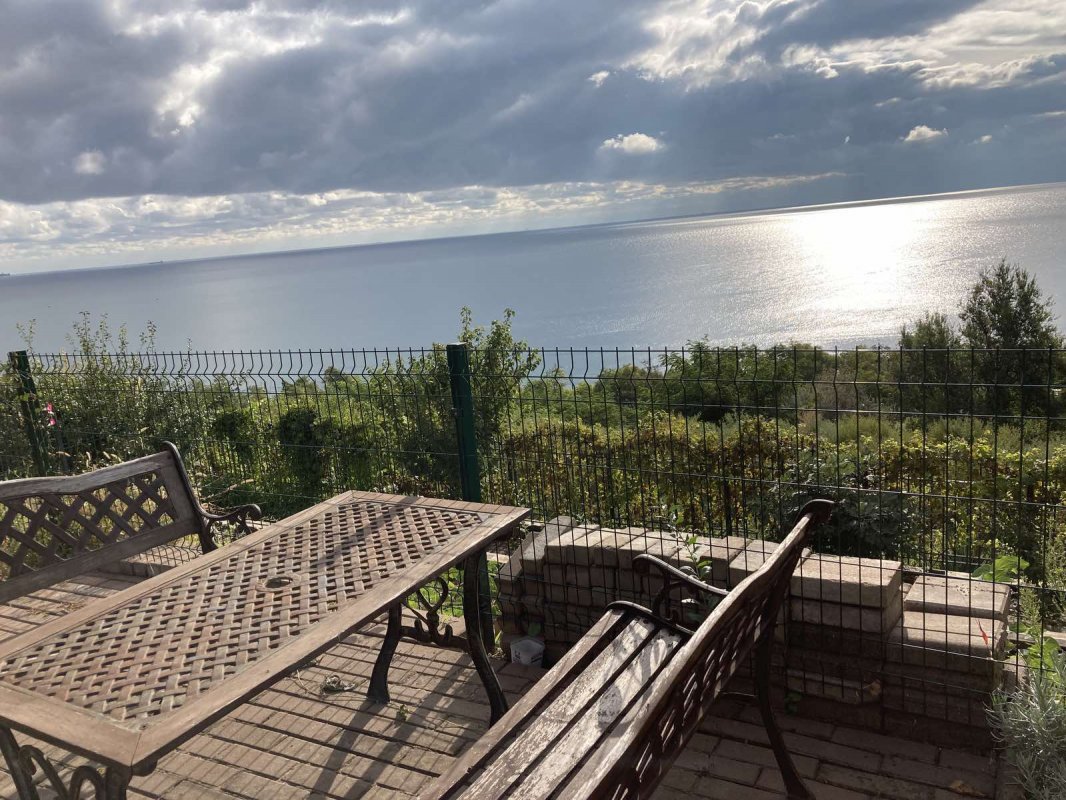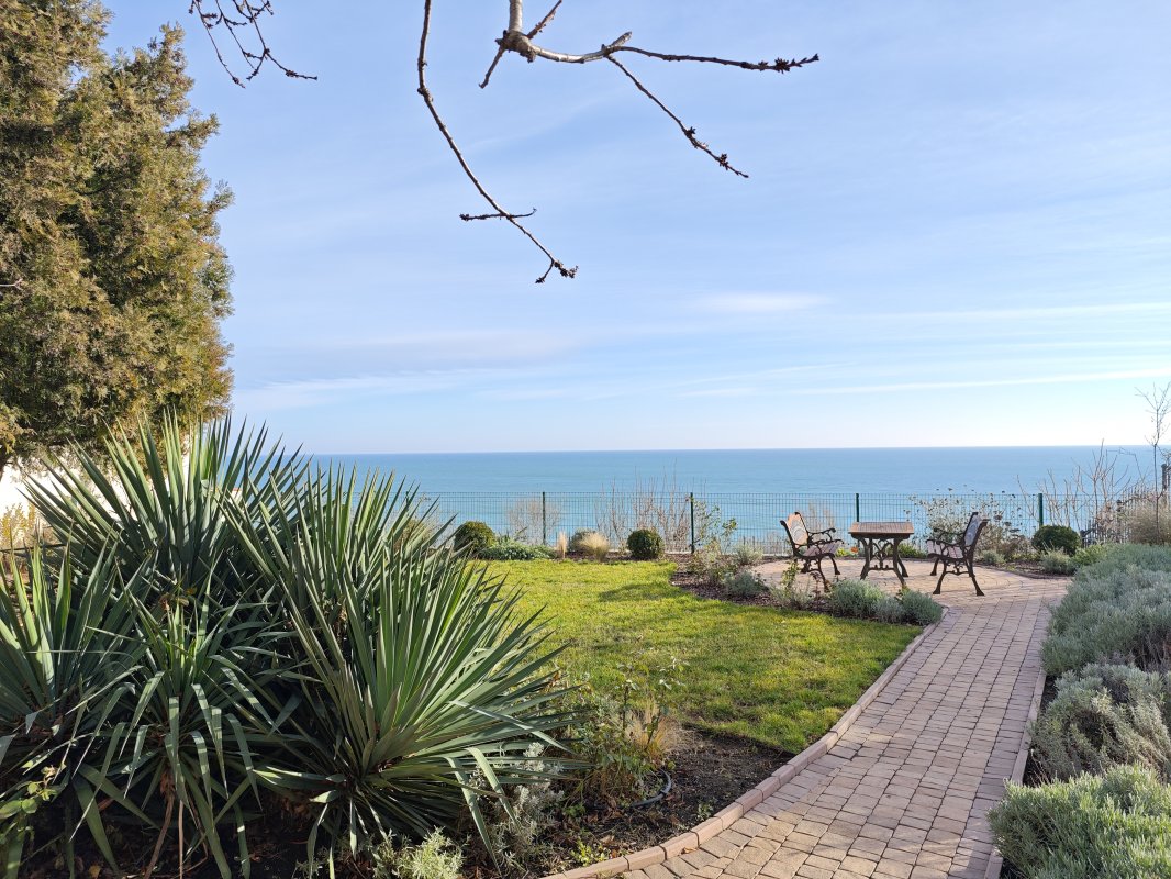 На участке: мангал, стол со скамейками, переносная качеля-сиденье (можно установить в удобном месте), декоративные деревья и кустарники. С территории открывается великолепный вид на море, также есть выход на склон и недалеко расположен спуск к морю.