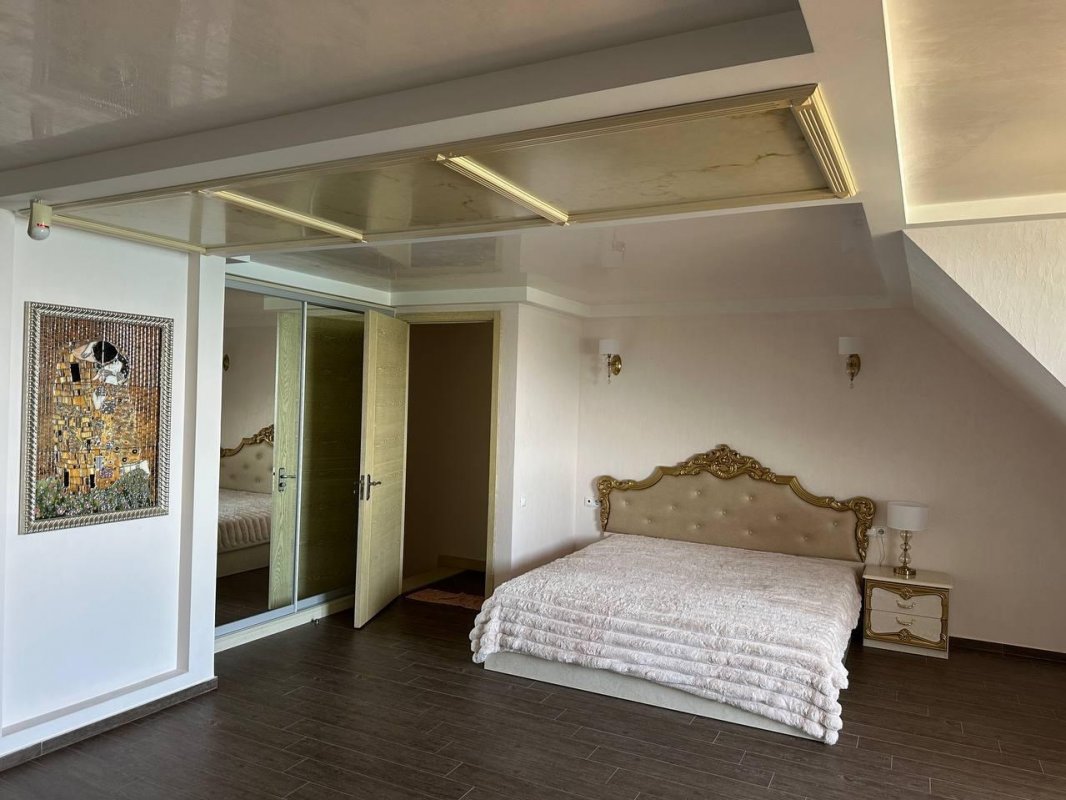 Дом в три уровня, общая площадь 230 м², большая кухня-студия. Установлен накопительный бак с водой.