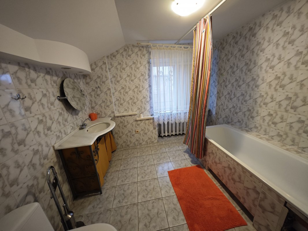 Дом в три уровня, общей площадью 325 м², расположен на участке 10 соток. Планировка включает 5 изолированных спален, отдельную кухню, гостиную и 3 санузла. Есть полноценный подвал с комнатой и вторым выходом — может использоваться как укрытие во время тревог.