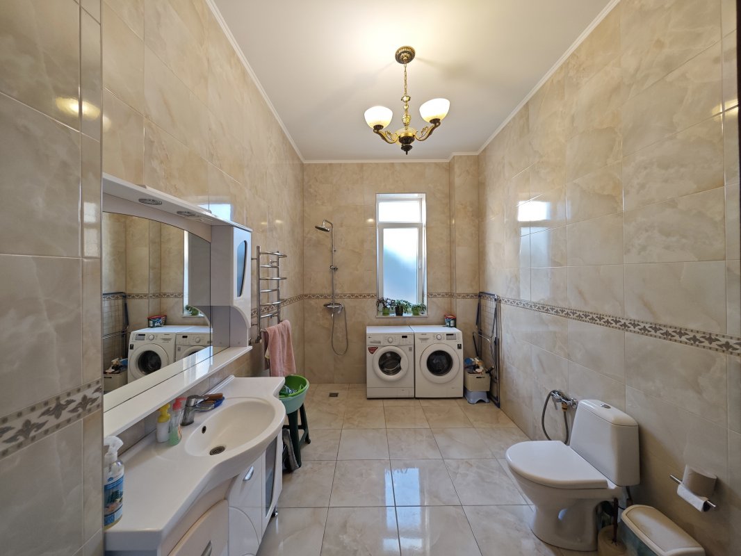 Дом построен на монолитной железобетонной плите. Цокольный этаж выполнен из армированного бетона и утеплён с двух сторон. Фундамент и цоколь качественно гидроизолированы специальными материалами, дополнительно выполнен глиняный замок — защита от влаги продумана основательно.
