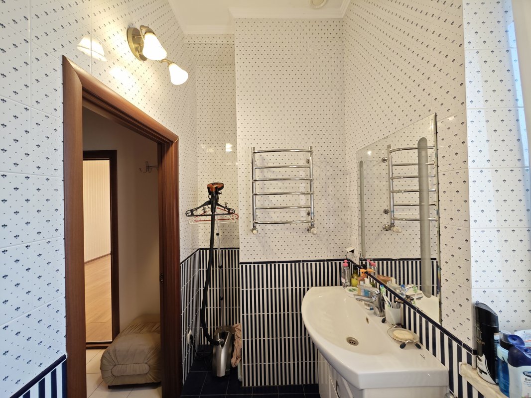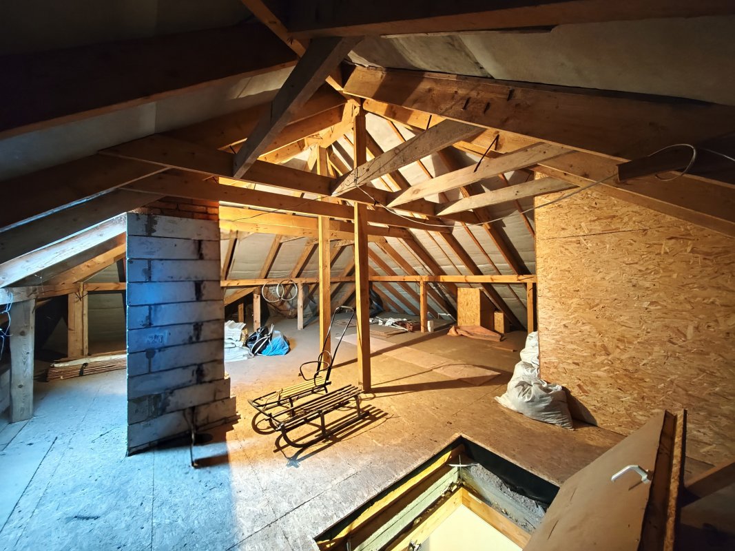 Чердачное перекрытие утеплено, настелен пол из Osb-плит. Подкровельное пространство высокое — при желании его можно использовать под дополнительную комнату, электричество уже заведено. Подъём на чердак осуществляется по раздвижной металлической лестнице.